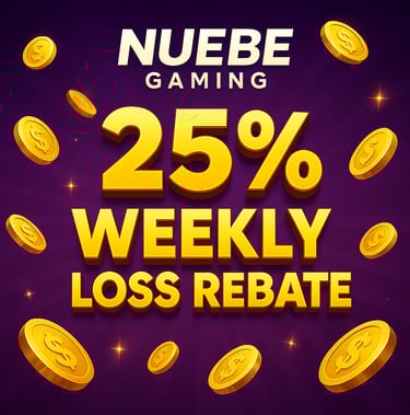At NUEBE GAMING, every promo is built with the player in mind. The 25% Weekly Loss Rebate is designed to make your gaming journey more rewarding, no matter the outcome. Here’s why it’s a game-changer: